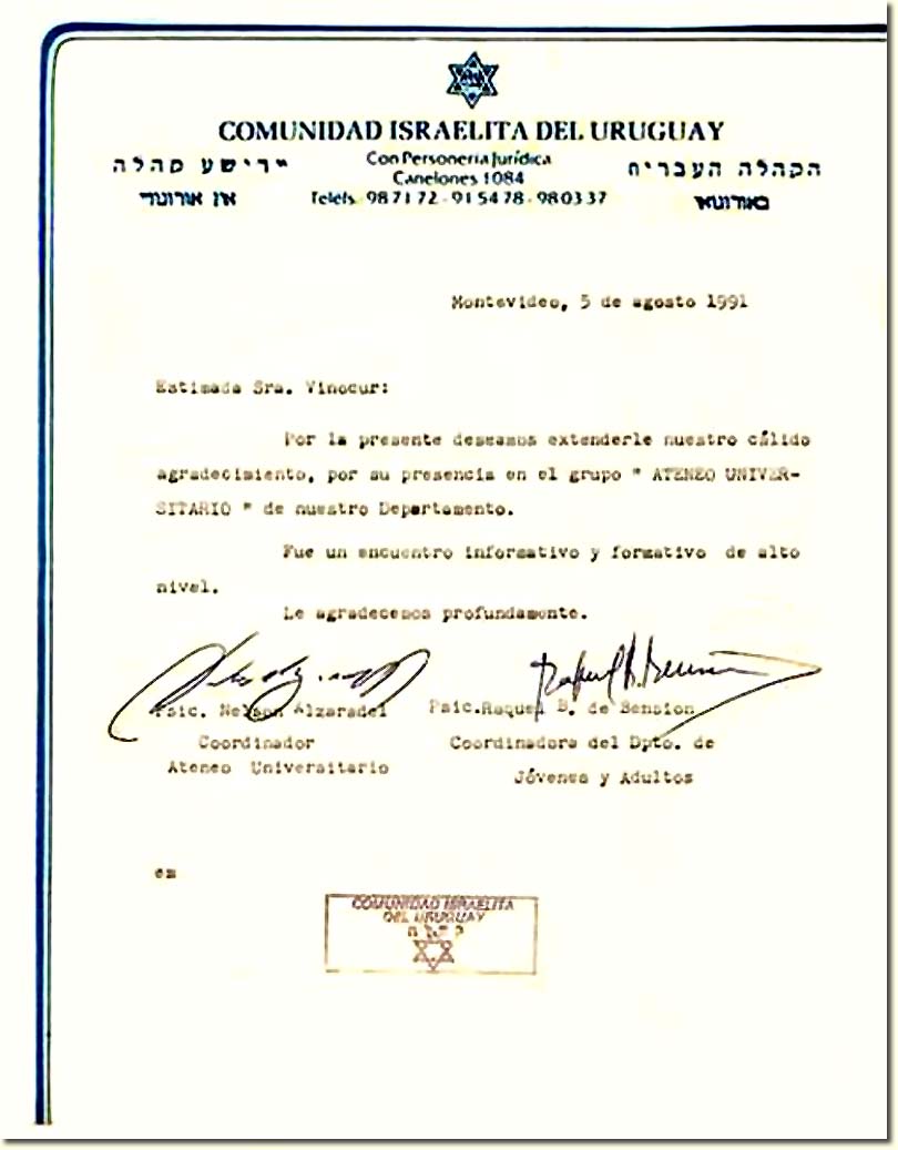 | Carta de la Comunidad Israelita del Uruguay. | |
