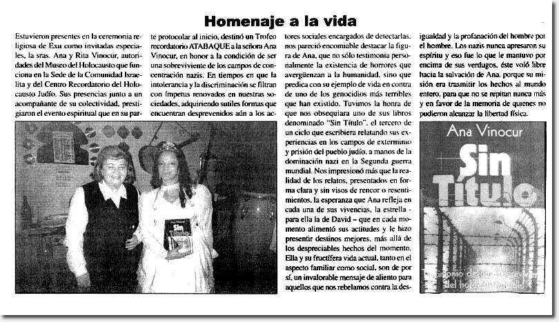 Palabras de Ana Vinocur ante el alejamiento físico del Sr. José Jerozolimski - Publicado en el "Semanario Hebreo" |